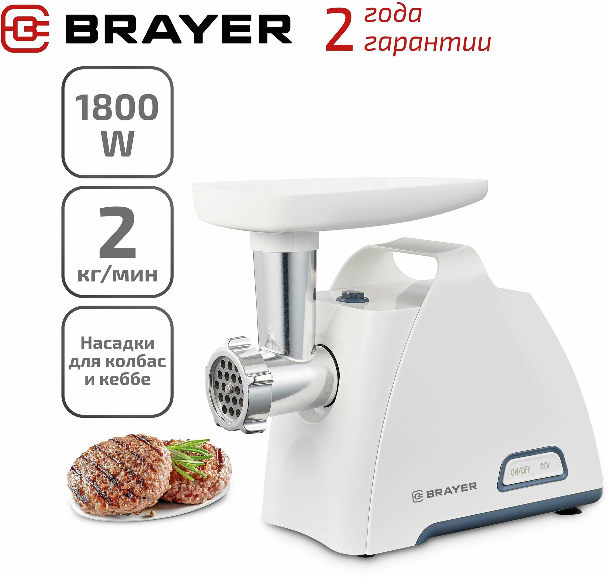 Мясорубка электрическая BRAYER BR1604, 1800 Вт, белый/серый