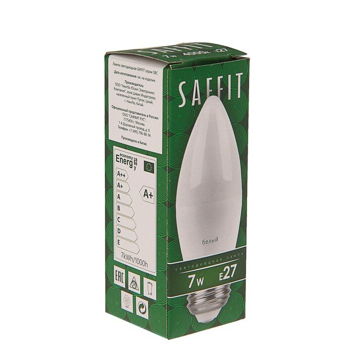 Лампочка светодиодная Saffit 7Вт 230V E27 4000K C37, SBC3707, 55033