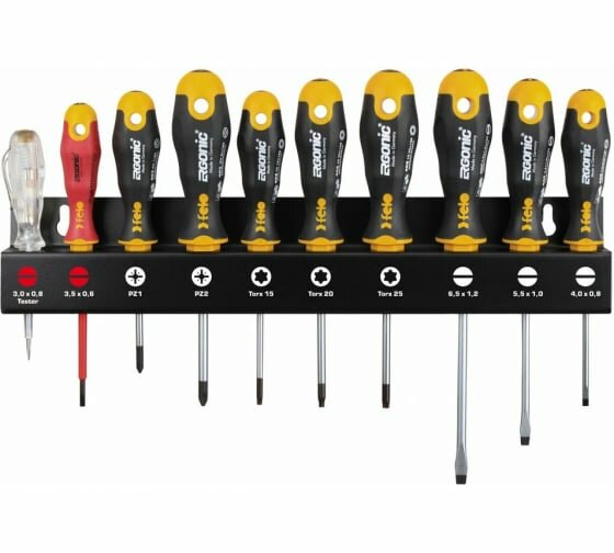 Набор отверток Felo Ergonic SL/PZ/Tx, отвертка VDE и отвертка тестер-сети на стальной стойке, 10 шт 40091043 интересное: