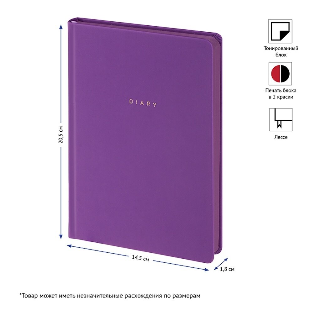 Ежедневник недатированный A5 OfficeSpace "Grace" (160 листов) обложка кожзам, фиолетовый, цветной срез (ENA5_32579)