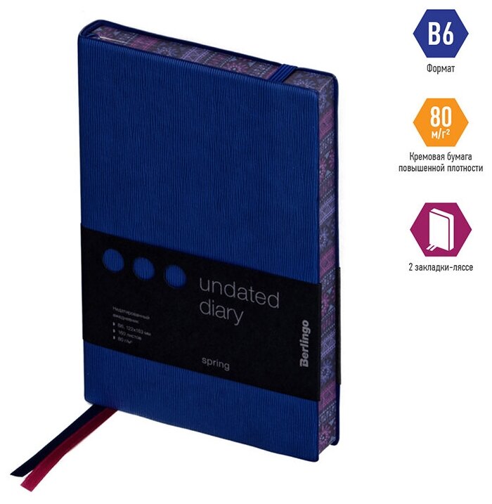 Ежедневник недатированный Berlingo B6, 160 листов, кожзам, "Spring", полноцветный срез, синий (UD0_88605)