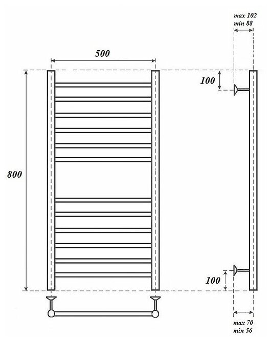 Водяной полотенцесушитель Aquanet Mauro(г2) 800x500