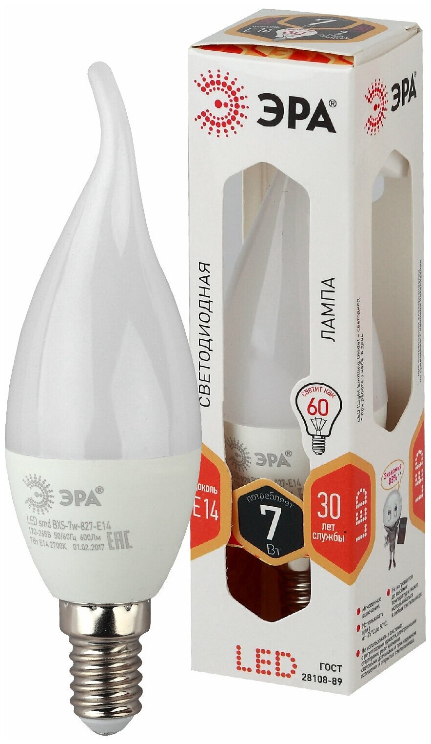 Лампа светодиодная ЭРА E14 7W 2700K матовая LED BXS-7W-827-E14 Б0028482 интересное: