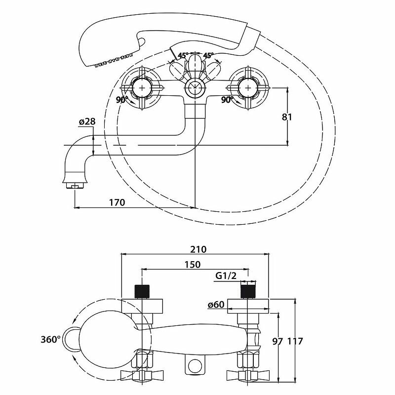 Смеситель для ванны Kaiser Cross 41022