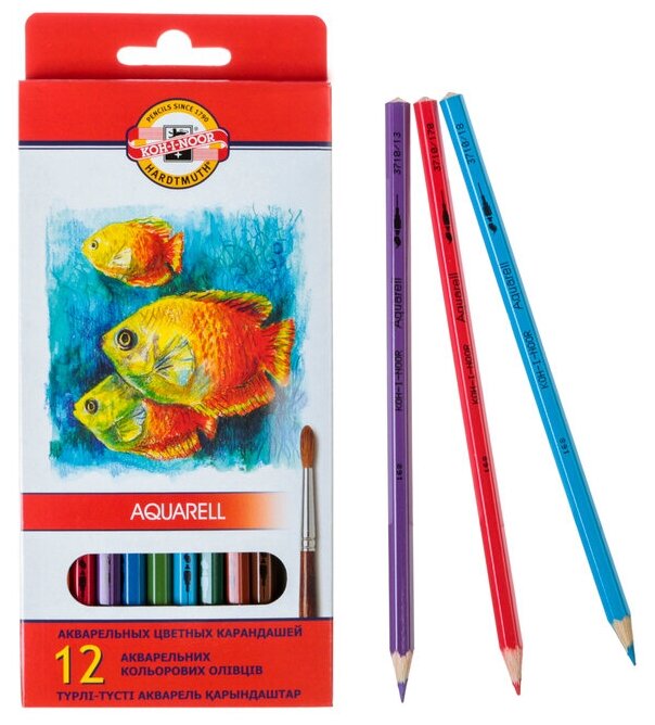 Карандаши цветные Koh-I-Noor "Рыбы" акварельные, 12 цветов, заточенные