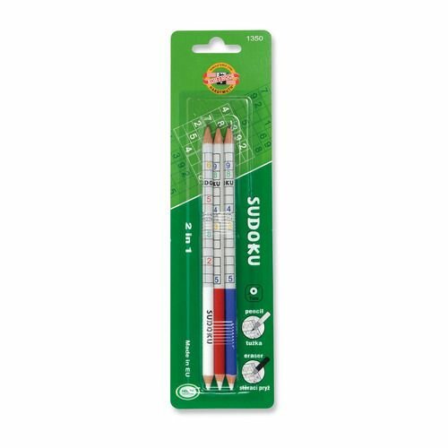 Купить Карандаш Koh-I-Noor ч/г Sudoku 1350 2мм 2B кругл. блистер (1шт) ластик 3 карандаша