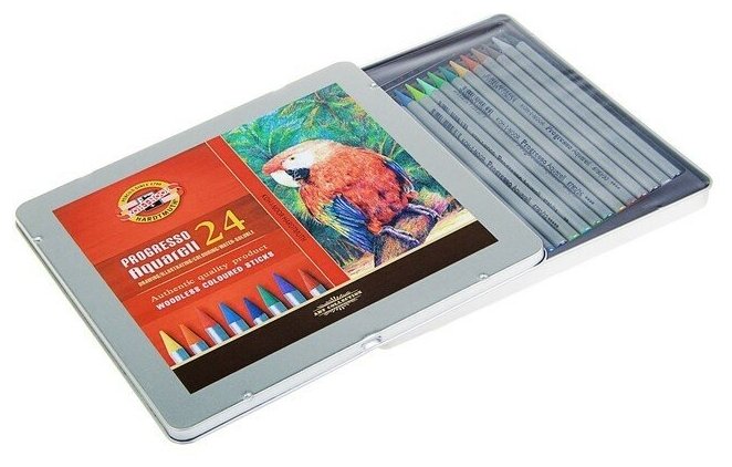 Карандаши акварельные Koh-I-Noor "Progresso", 24 цв., заточен., в лаке, без дерева, метал. пенал. (арт. 298315)