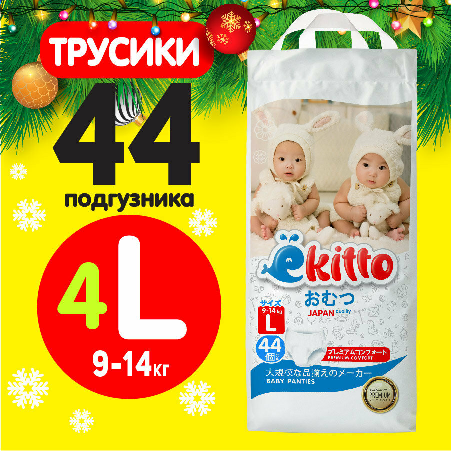 Подгузники трусики 4 размер L для новорожденных детей от 9-14 кг 44 шт / Ёкитто