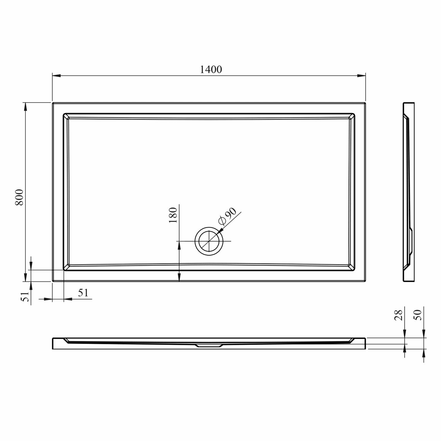 Акриловый душевой поддон Lavinia Boho One 37019140, прямоугольный, 140 х 80 см