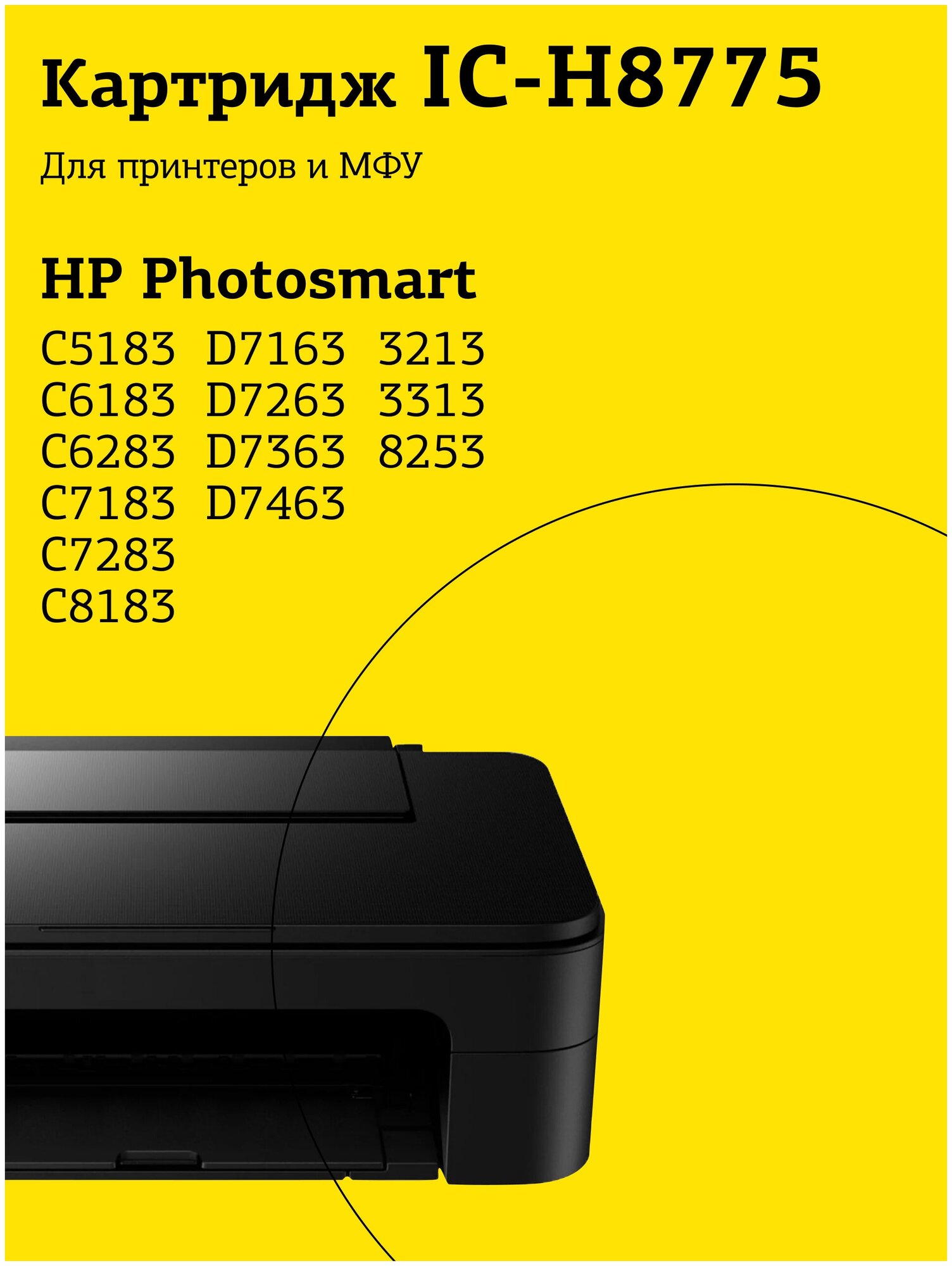 | Модель совместимого принтера | HP PhotoSmart 3313 / HP PhotoSmart 8253 / HP PhotoSmart C6183 / HP PhotoSmart C7183 / HP PhotoSmart C8183 / HP PhotoSmart D7163 / HP PhotoSmart D7300 / HP Photosmart 3213 / HP Photosmart C5183 / HP Photosmart C6283 / HP Photosmart C7283 / HP Photosmart D7263 / HP Photosmart D7463 |