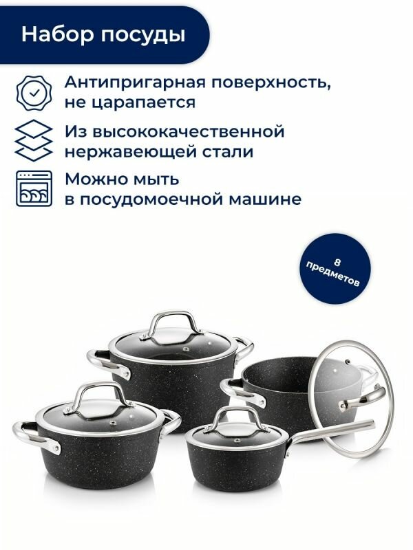 Набор посуды Tescoma President Stone 780310 8 пр. черный интересное: