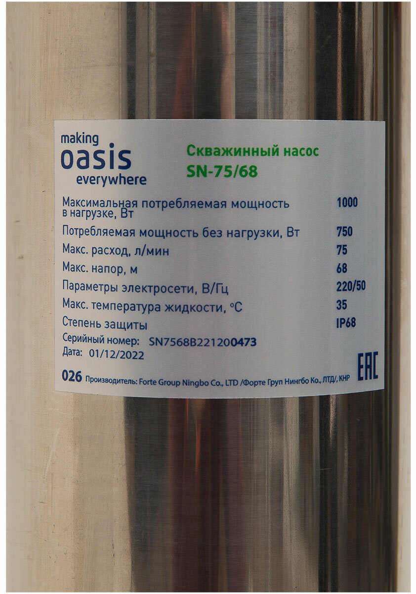 Насос скважинный OASIS SND 75/68 "making Оasis everywhere"