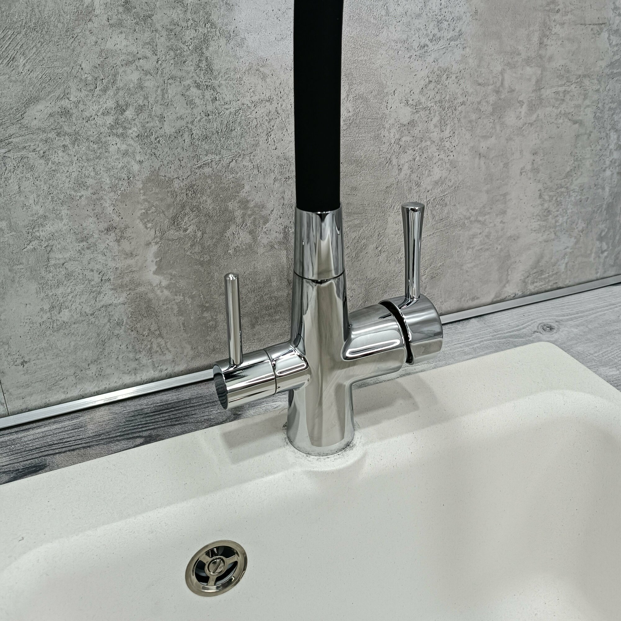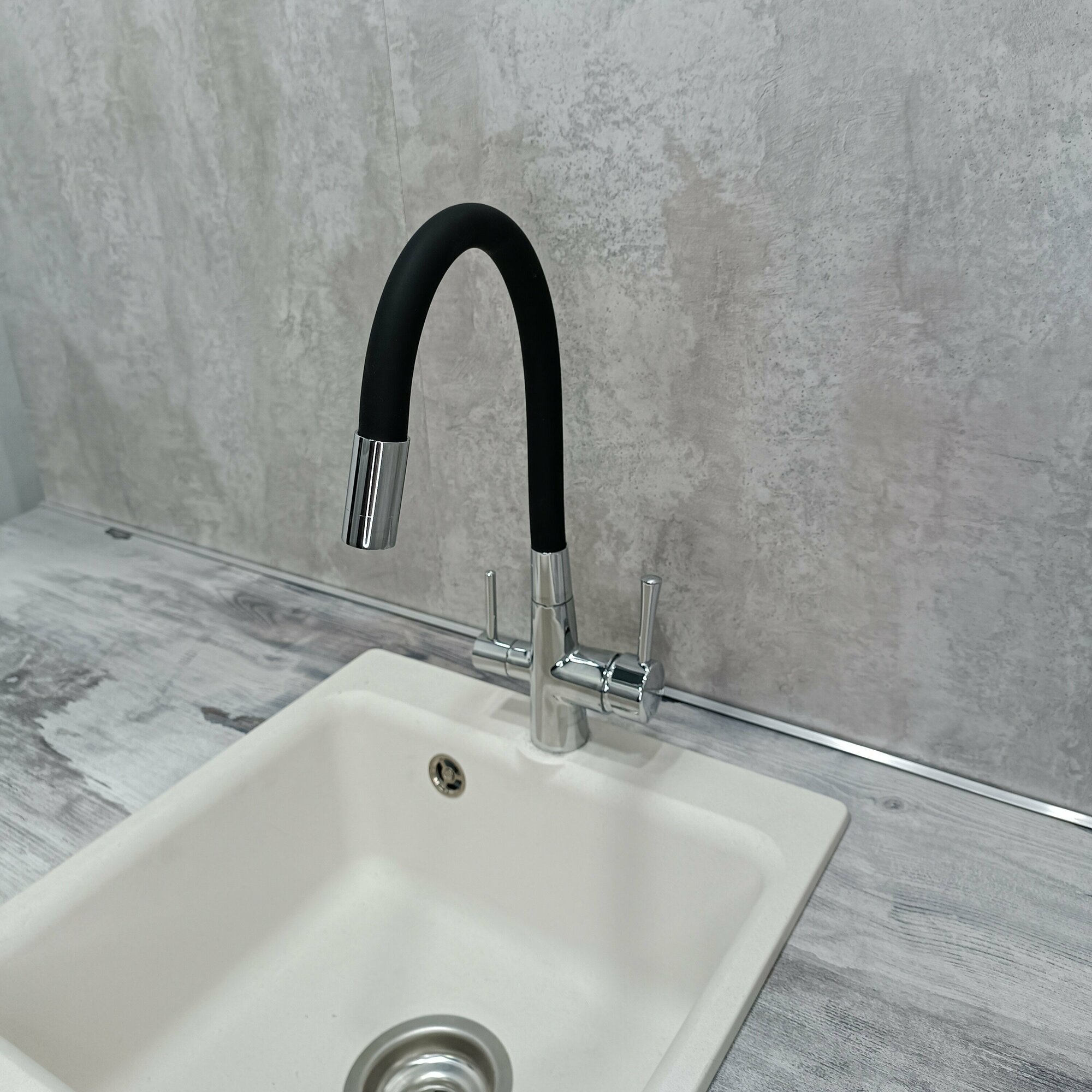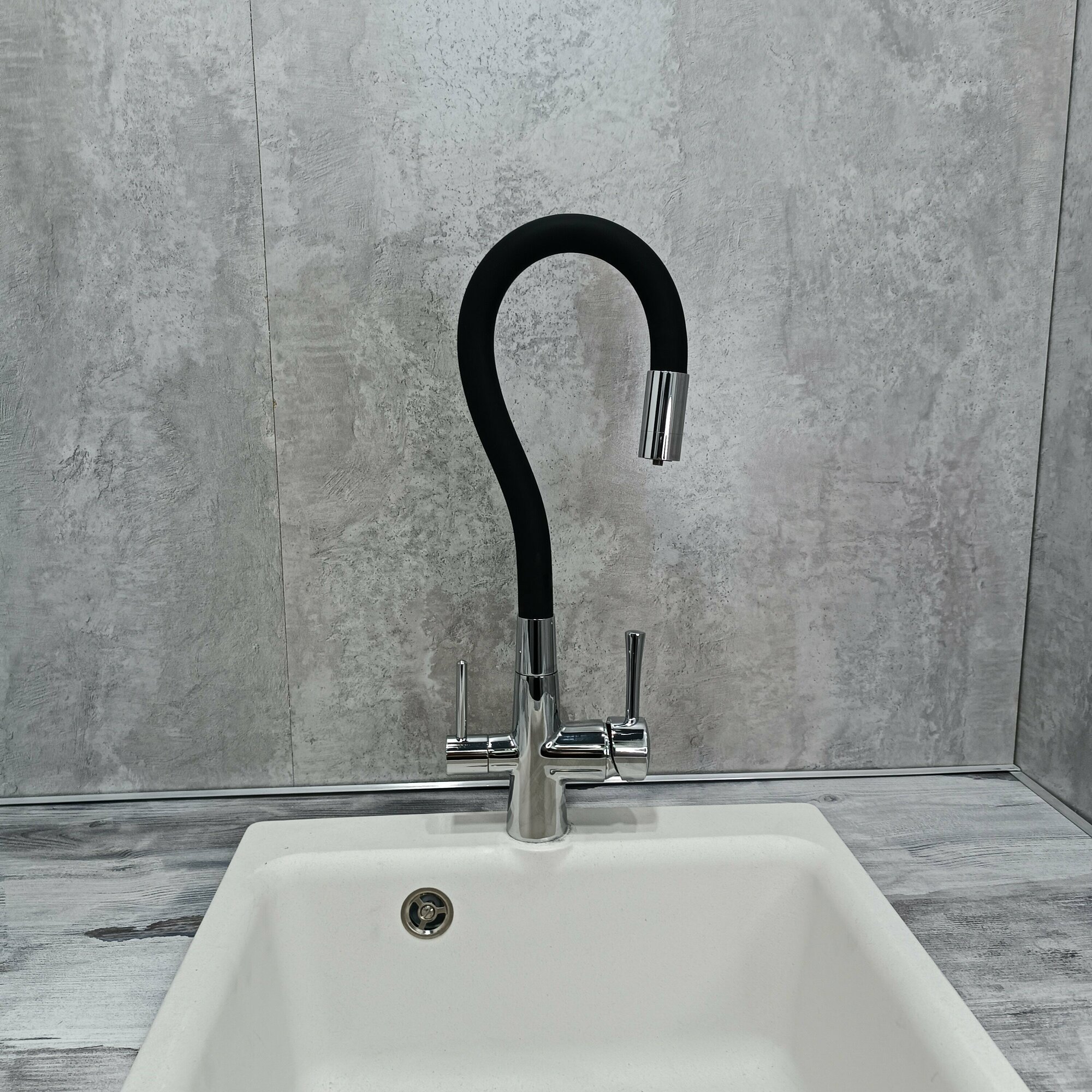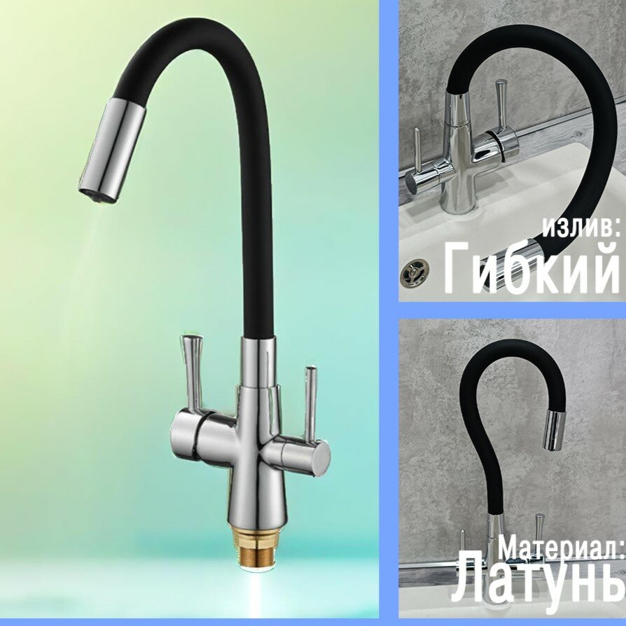 Смеситель для кухни с подключением фильтра и гибким изливом