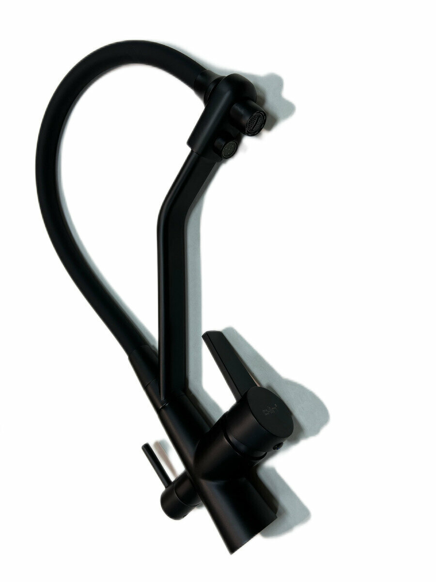 Смеситель для кухни D-lin D159317-A с фильтром для питьевой воды, гибким поворотным изливом, черный (матовый)