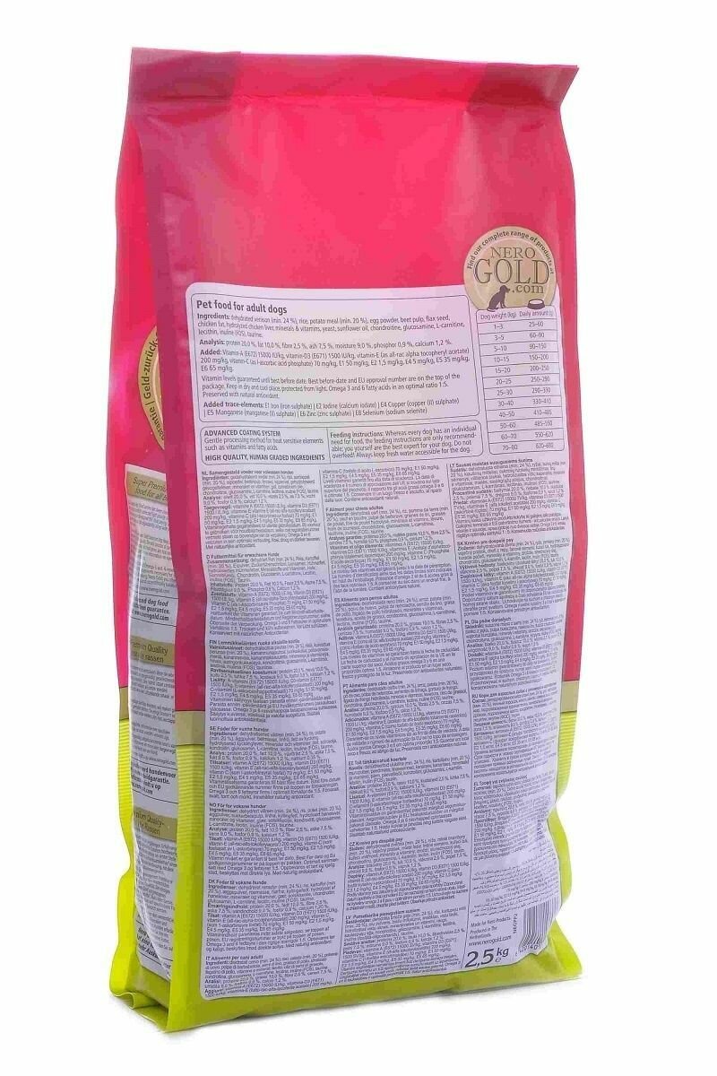 Сухой корм NERO GOLD DOG ADULT VENISON & POTATO для взрослых собак всех пород с олениной и сладким картофелем (2,5 кг)