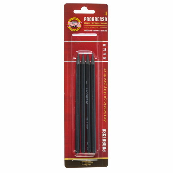 Koh-I-Noor Набор карандашей цельнографитовых разной твердости 4 штуки, Koh-I-Noor PROGRESSO 8914, 6B-HB, блистер