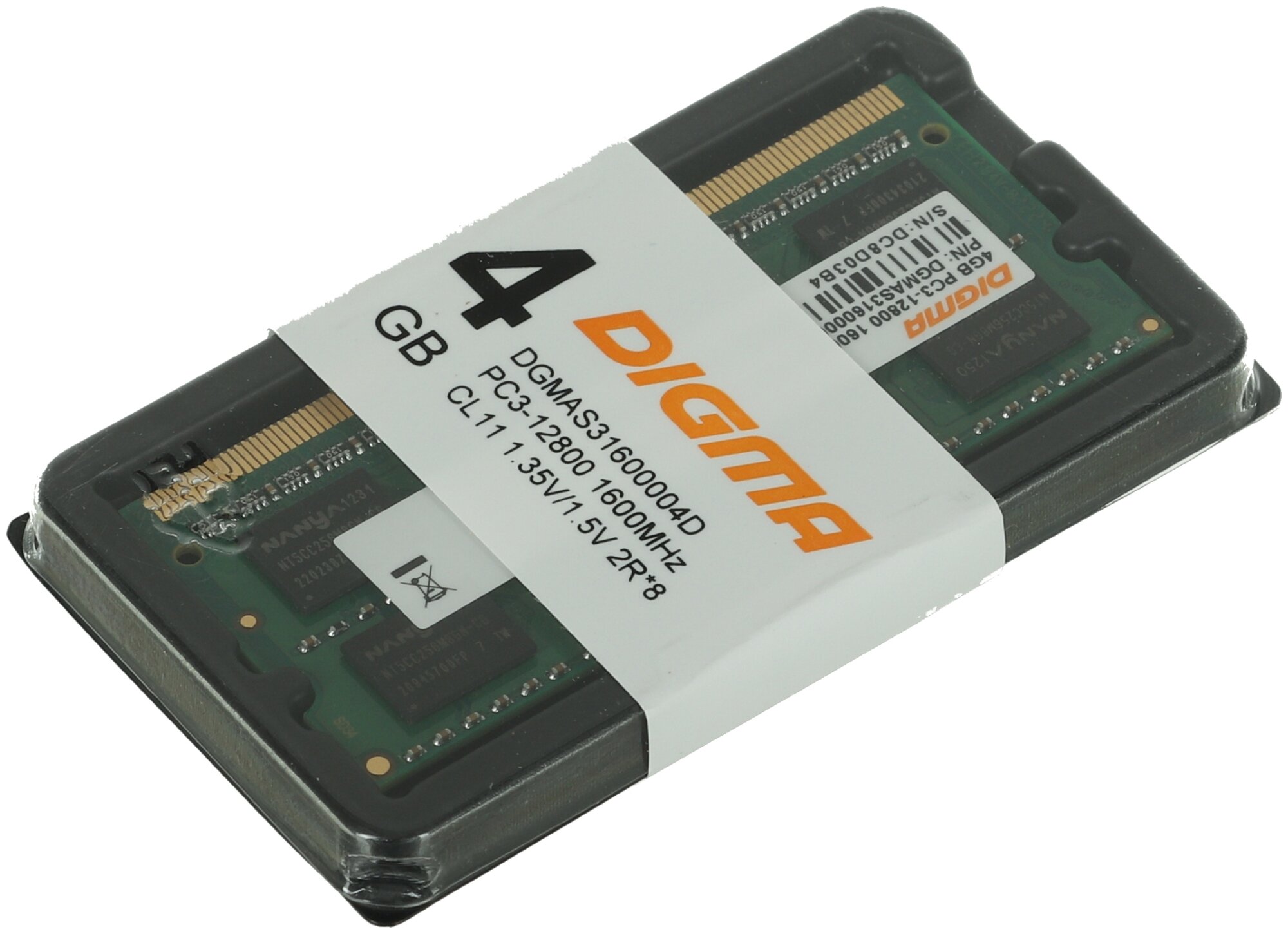 Купить Память DDR3 4Gb 1600MHz Digma DGMAS31600004D RTL PC3-12800 CL11 SO-DIMM 204-pin 1.5В dual rank