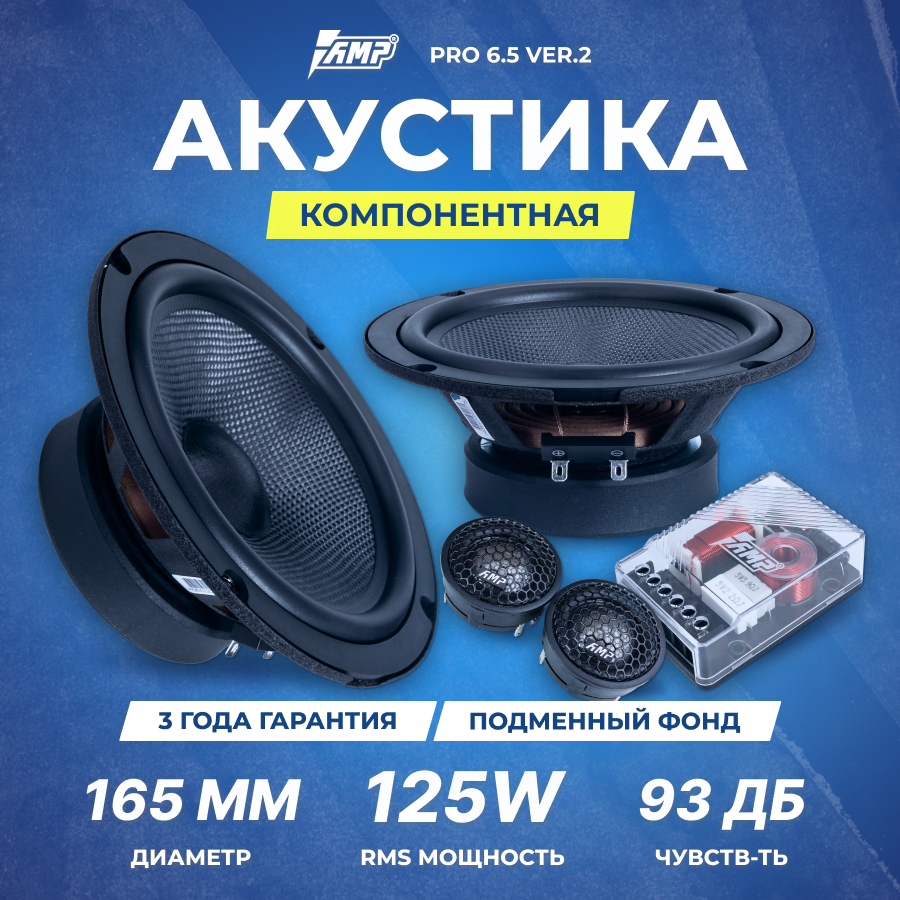 Акустика автомобильная компонентная AMP PRO (MD) 6.5 ver.2, 16,5 см (6,5"), 250 Вт