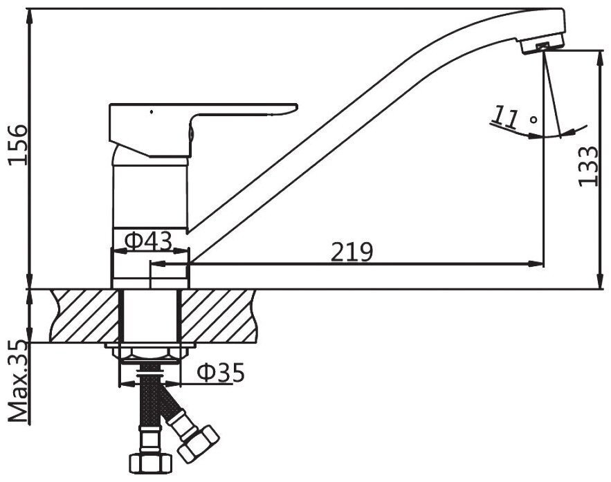 | Длина излива | 219 мм |