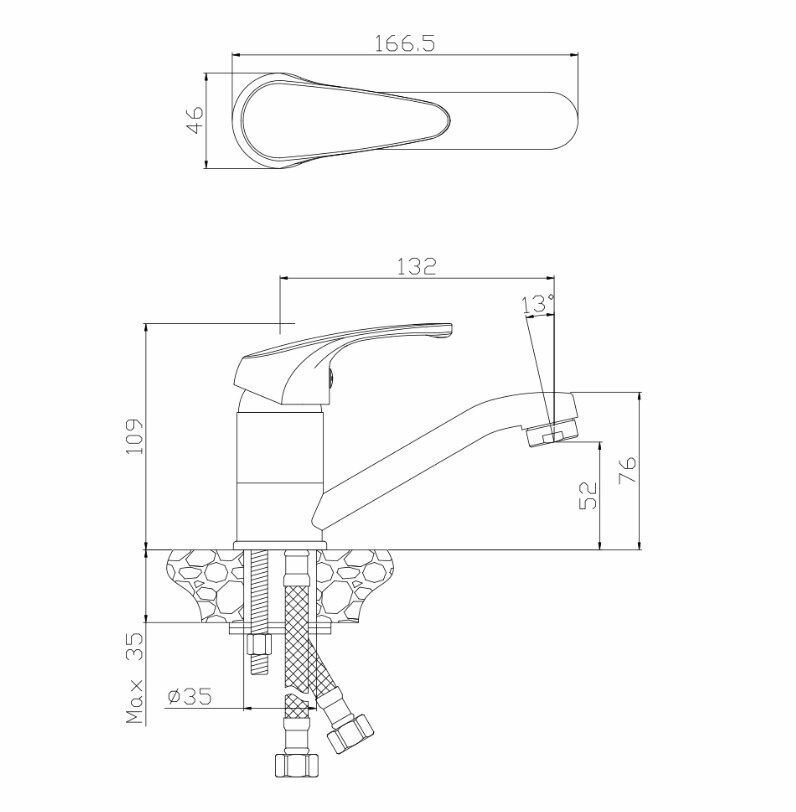 | Длина излива | 132 мм |