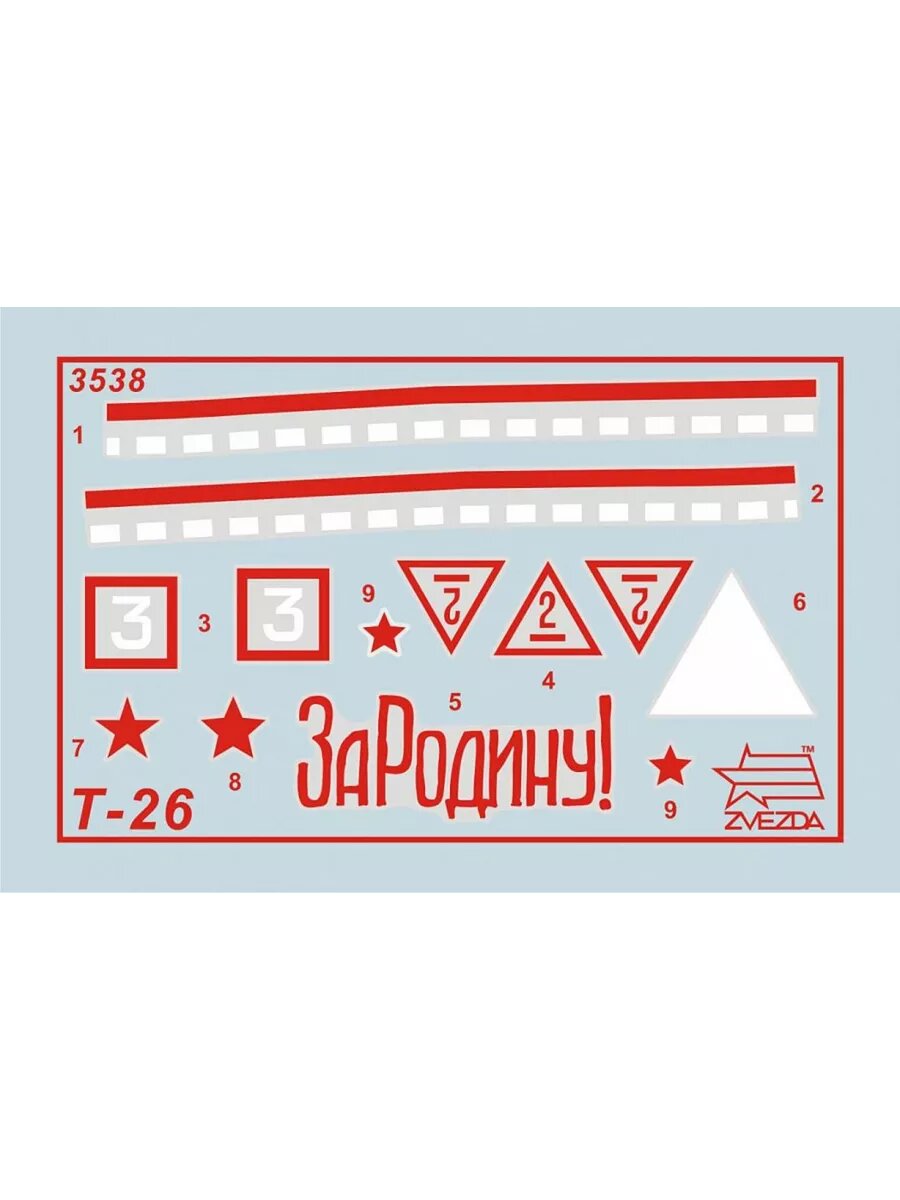 Сборная Модель 1:35 Советский легкий танк Т-26 (образец 1933г.) (модель+клей+краски+кисточка) 3538ПН, (Звезда)