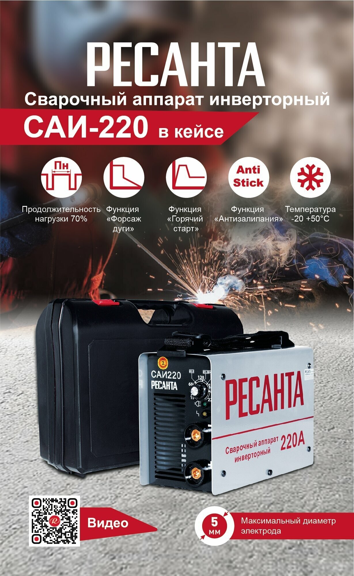 Купить Инверторный сварочный аппарат РЕСАНТА САИ-220 в кейсе