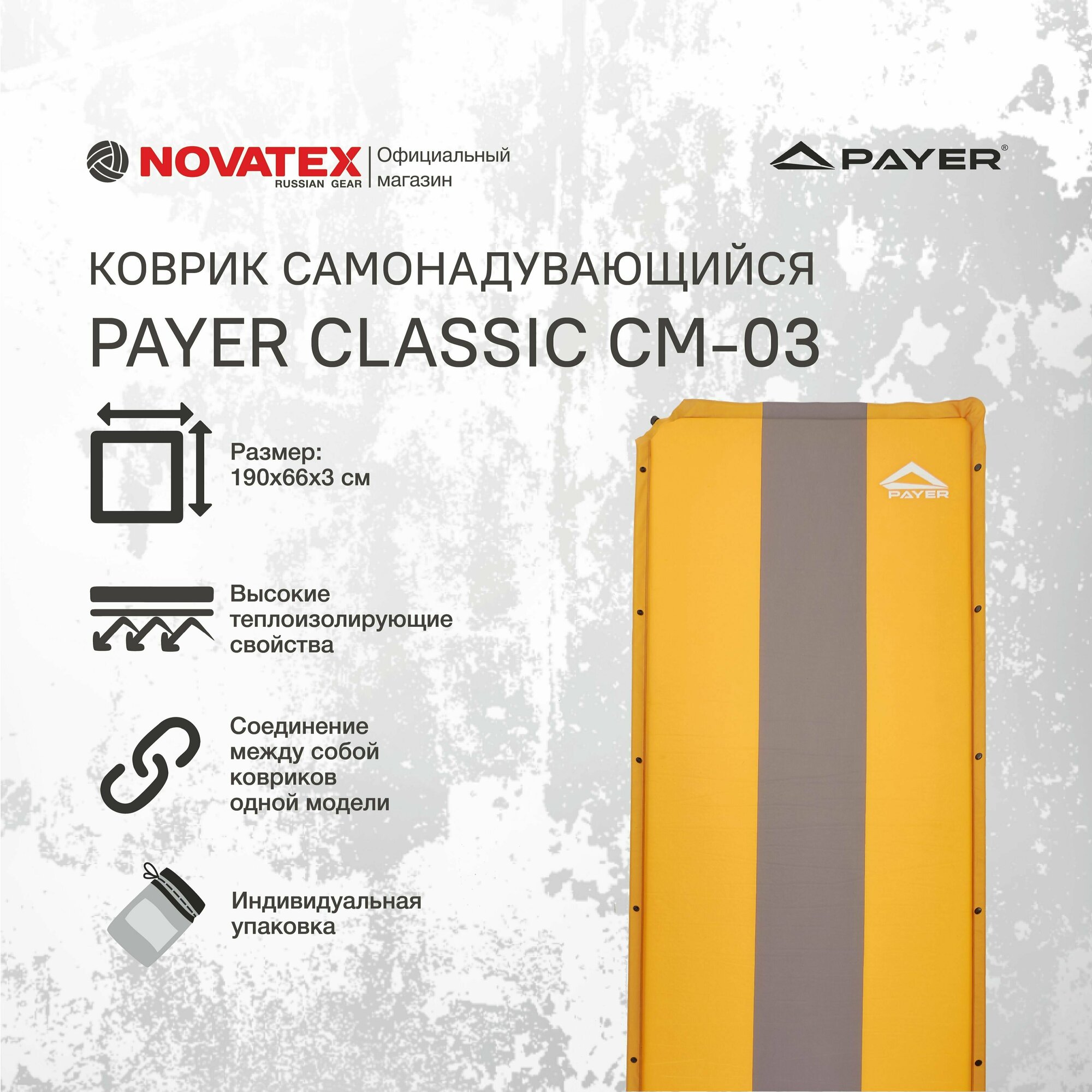 Коврик самонадувающийся Payer Classic CM-03 серый/оранжевый [190х66х3 см, / ] интересное: