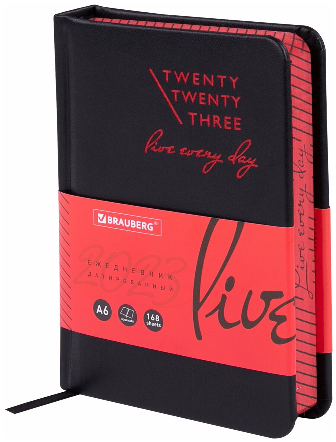 Ежедневник датированный 2023 А6 100х150 мм BRAUBERG «Chameleon», под кожу, черный/красный интересное: