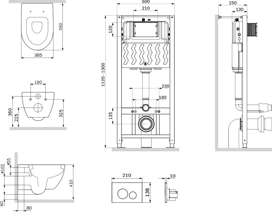 | Дополнительная информация | Бачок на стальной раме, смывная арматура, гибкая подводка воды к заливному клапану, монтажная коробка для окна обслуживания, регулируемые по высоте опорные стойки для крепежа в пол, шпильки для крепления к стене, крепежные шпильки для унитаза, патрубки фанового отвода, патрубки для подвода воды к унитазу, прокладка между стеной и унитазом (шумоизоляция), набор крепежа, клавиша с креплениями; чаша унитаза, сиденье, крепления, инструкция. |