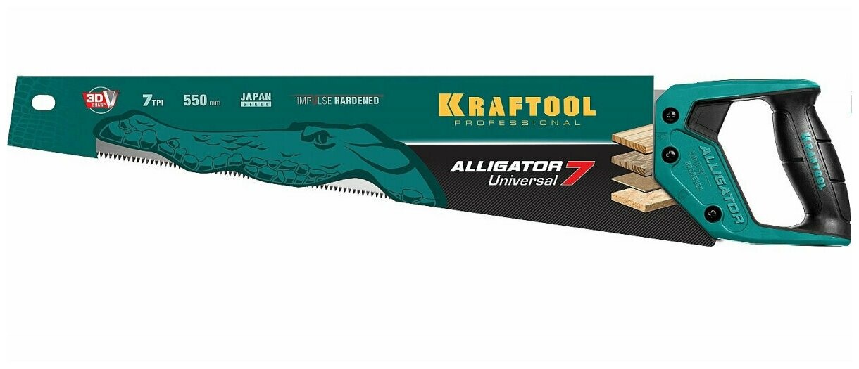 KRAFTOOL Alligator Universal 7, 550 мм, 7 TPI 3D зуб, Универсальная ножовка (15004-55)