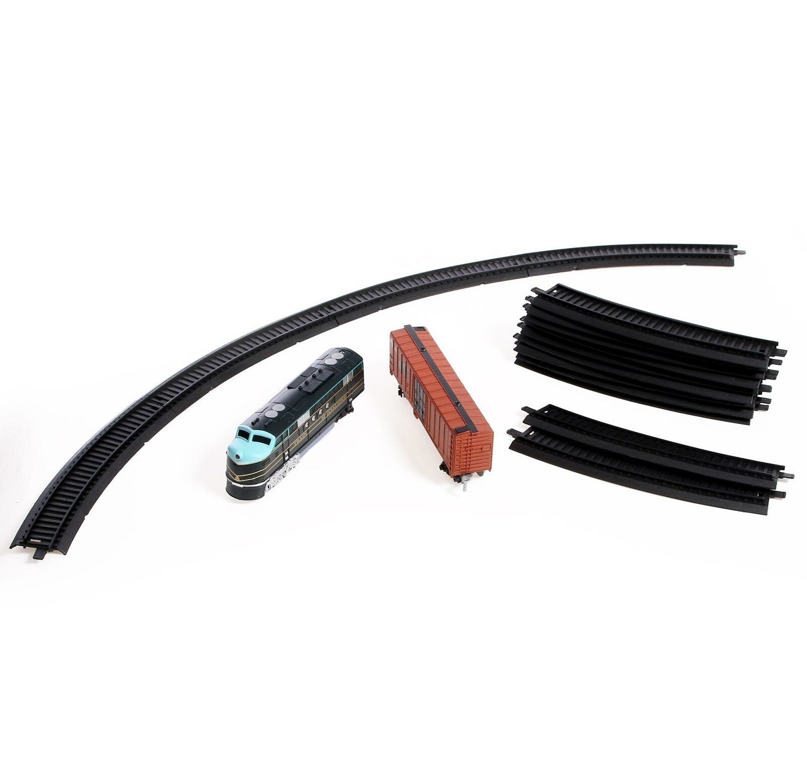 | Подробная комплектация | железная дорога, локомотив, вагоны, светофор, шлагбаум |