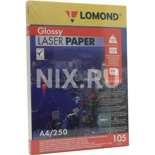Фотобумага для лазерной печати А4 Lomond, 105 г/м?, глянцевая двусторонняя, 250 листов (0310641) Lom .