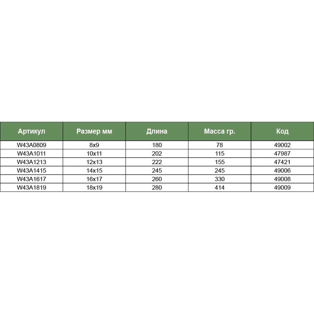 | Гаечные ключи подробно | карданные ключи: 8х9, 10х11, 12х13, 14х15, 16х17, 18х19 мм |