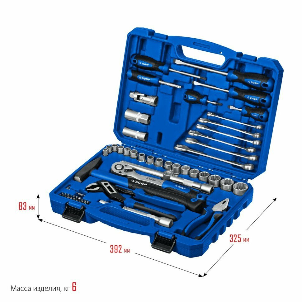 ЗУБР Универсал-63, 63 предм. (1/2"+ 1/4"), Универсальный набор инструмента, Профессионал (27670-H58)