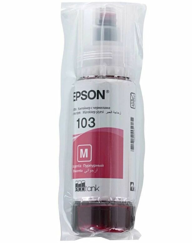 Чернила EPSON 103 (C13T00S34A) для СНПЧ EPSON L3100/L3101/L3110/L3150/L3151/L1110, пурпурные, оригинальные