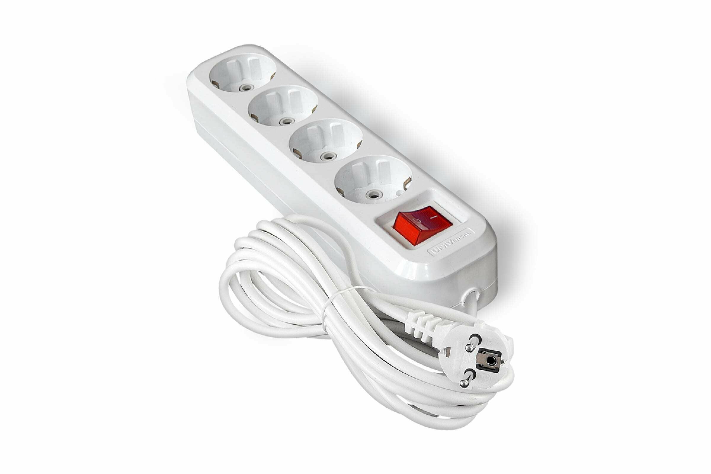 Удлинитель бытовой 4 гн, 5 м, ПВС, 3х1 мм2, с/з, выкл, UNIVersal, S-304, 9631991