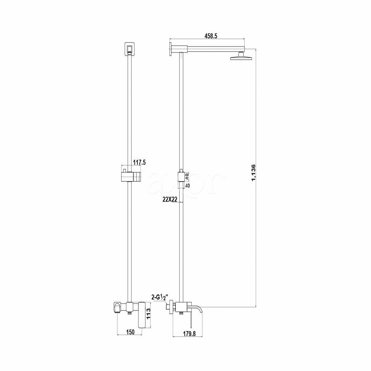 | Дополнительная информация | высота стойки для душа: 1140 мм; длина верхнего душа: 360 мм; ширина верхнего душа: 190 мм |