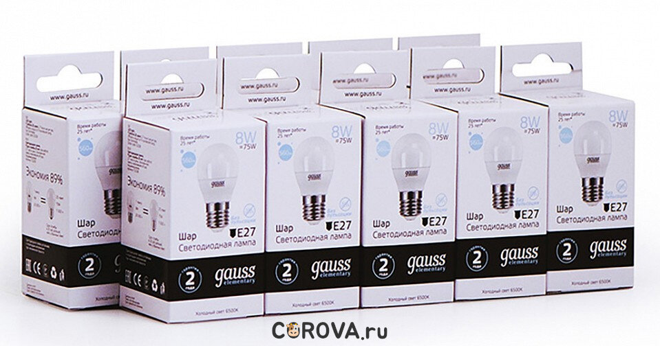Упаковка светодиодных ламп 5 шт Gauss Elementary Шар 8W 520lm 3000K Е27 LED 53218
