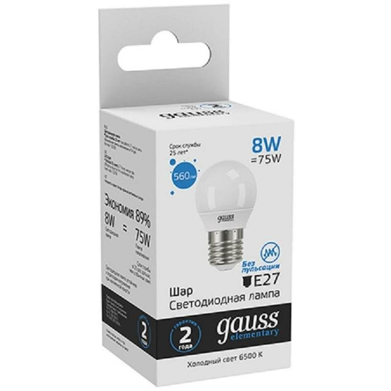 Gauss Лампа Elementary Шар 8W 560lm 6500K Е27 LED