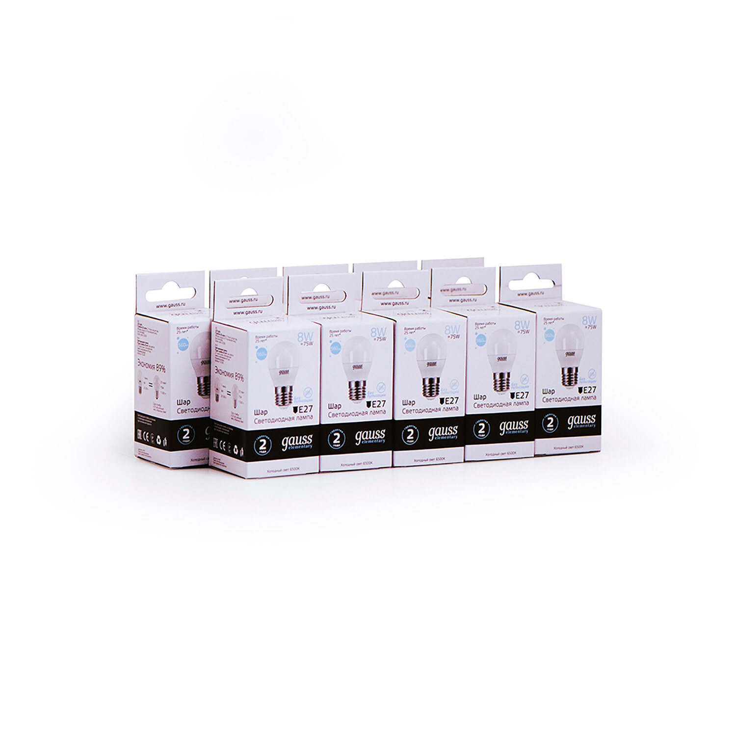 Gauss Лампочка Gauss Elementary Е27 Шар 8Вт 560лм 6500К LED 10шт