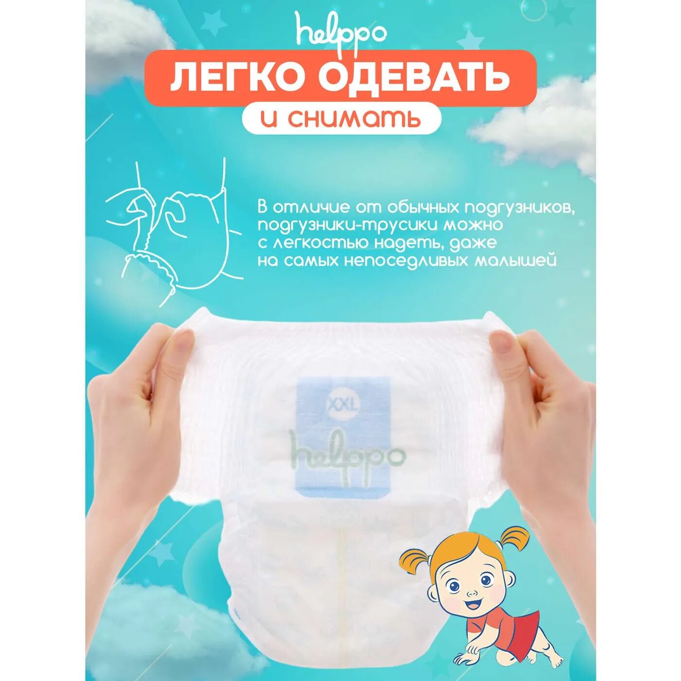 Подгузники трусики helppo, ультратонкие, размер XL (12-17 кг), 34 шт