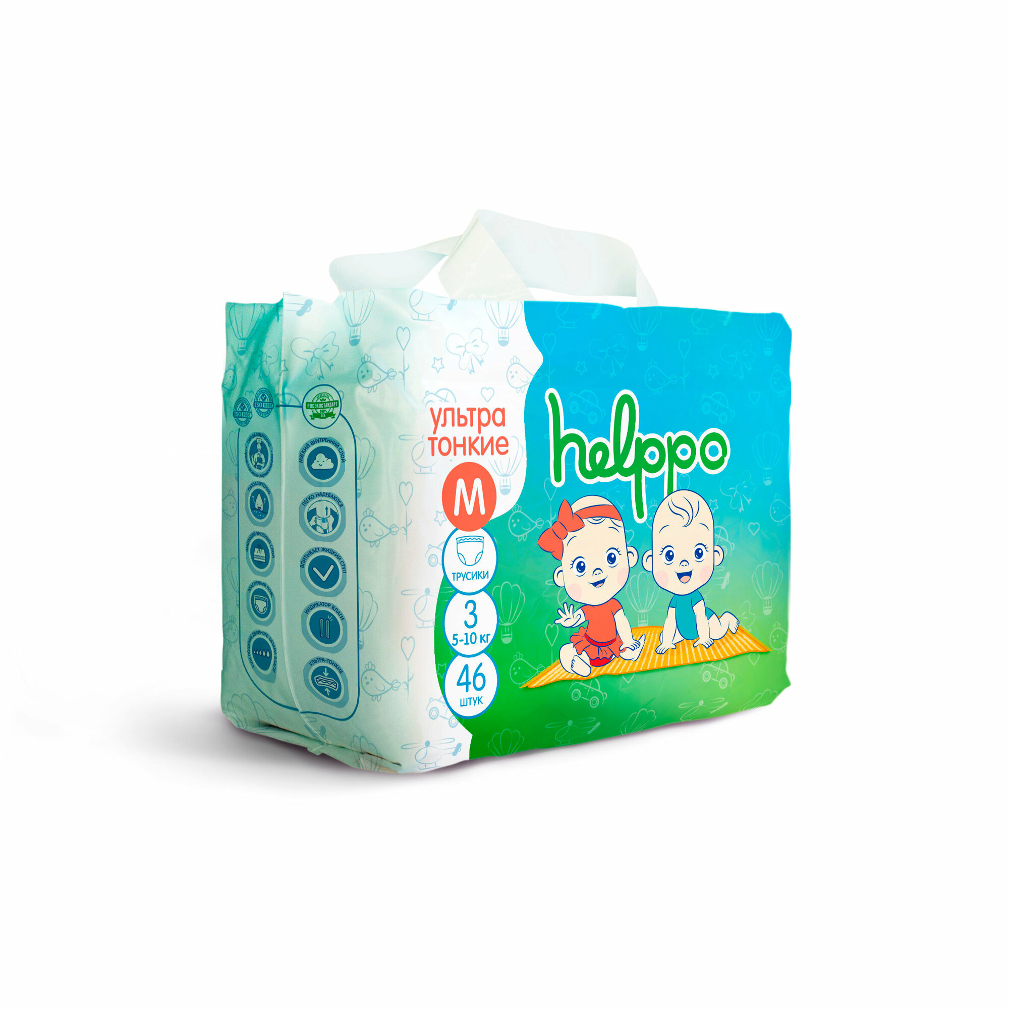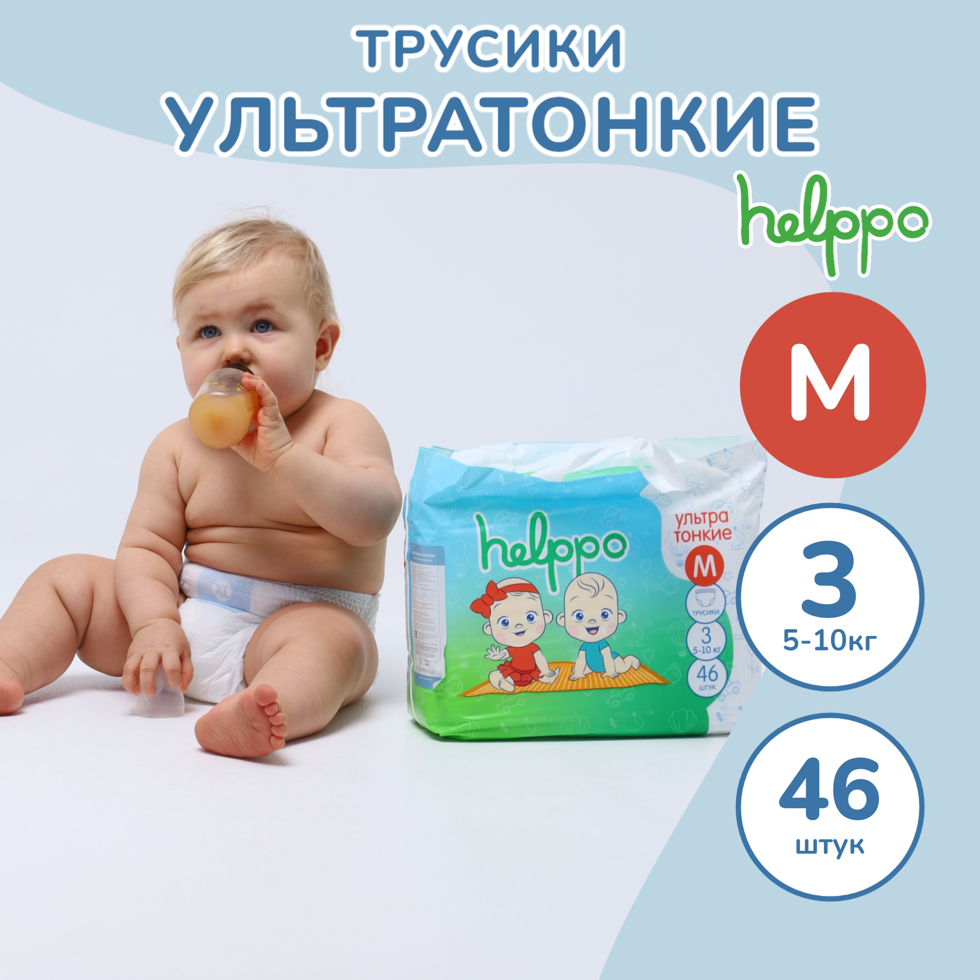 Подгузники трусики helppo, ультратонкие, размер М (5-10кг), 46 шт