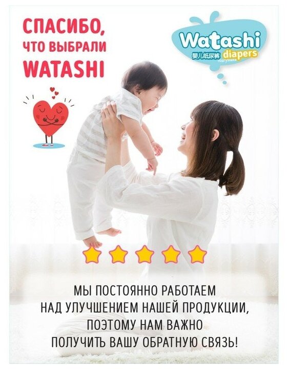 WATASHI подгузники детские р.3 4-9кг N52/M интересное: