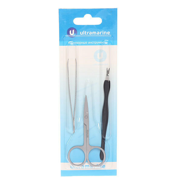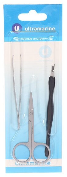 Купить Маникюрный набор на блистере, 3 предмета "Ultramarine" (триммер, ножницы и пинцет)