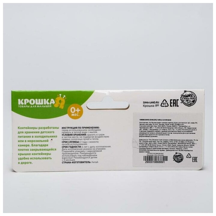 Набор контейнеров пищевых с крышками, для хранения детского питания, 8 шт., цвета микс интересное: