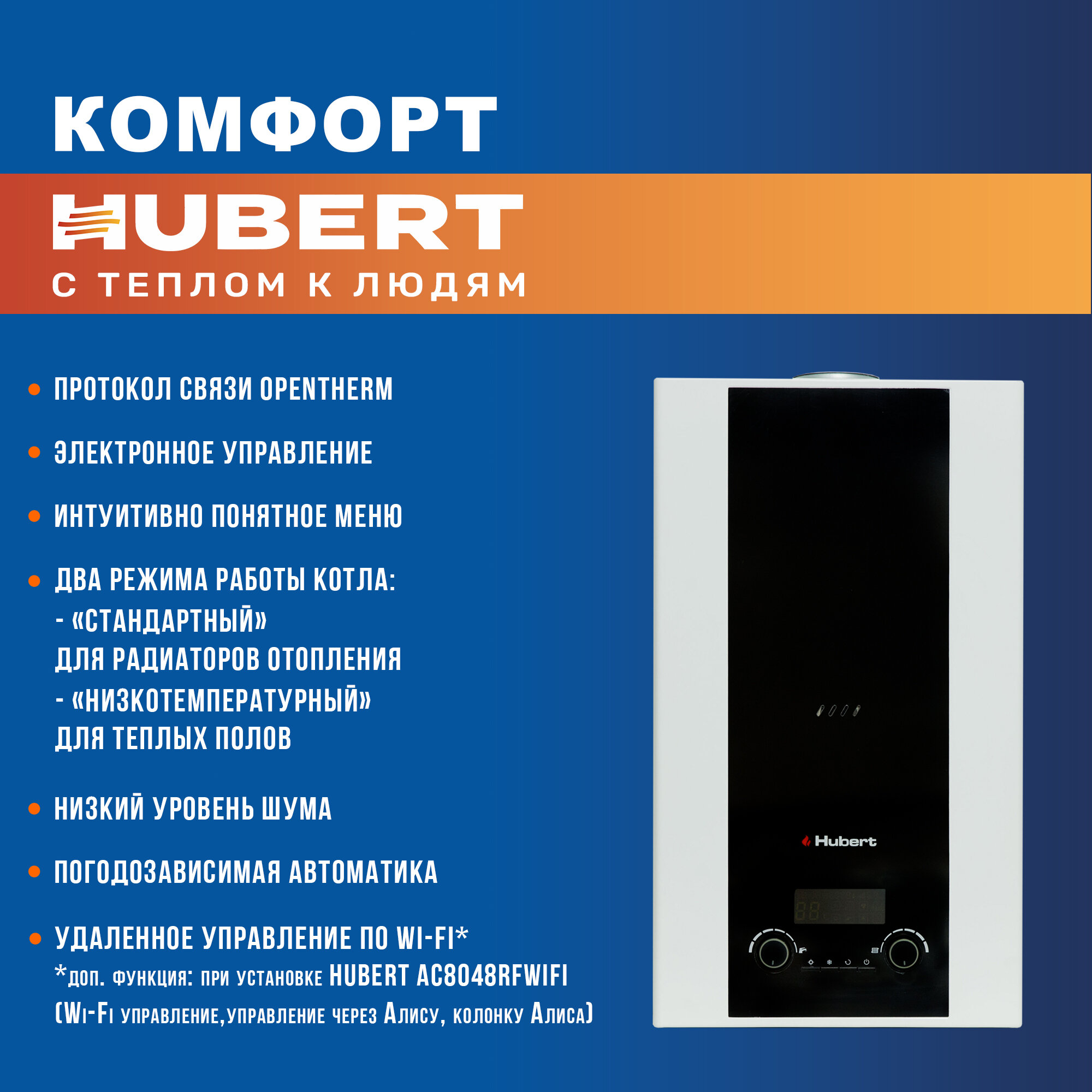 Настенный газовый котел HUBERT AGB 18DL, двухконтурный (закрытая камера)