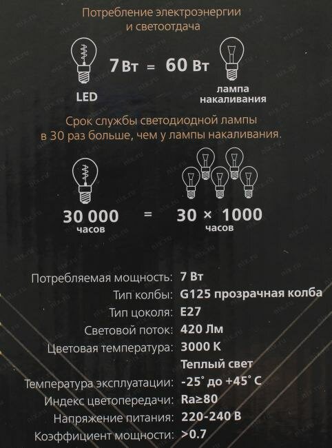 | Эквивалент лампы накаливания | 60 Вт |
