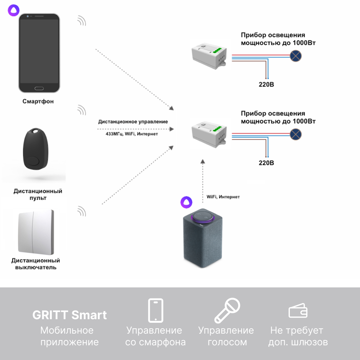 | Протокол связи Умного дома | RF433 / Wi-Fi |