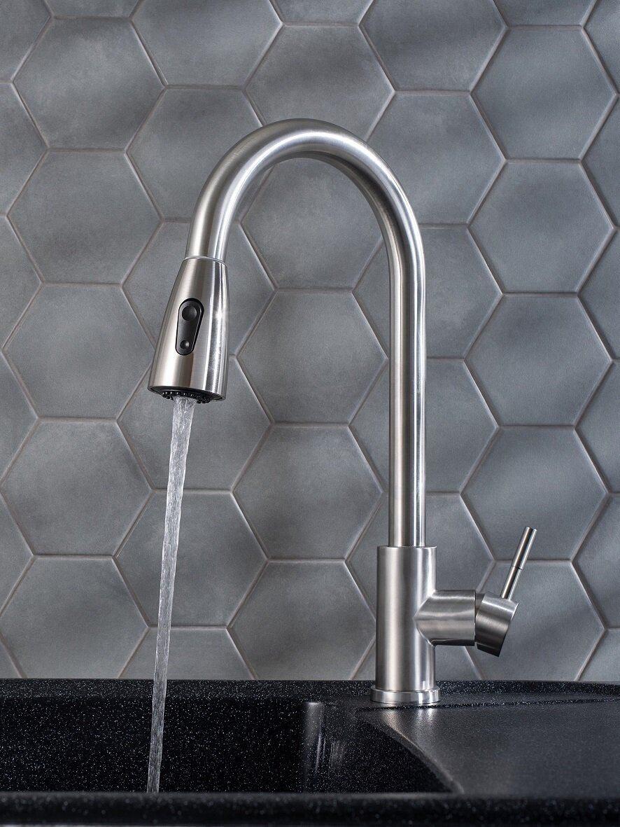 Смеситель для кухни, РМС, выдвиж излив, с картриджем, нерж, SUS124-017F-2 интересное: