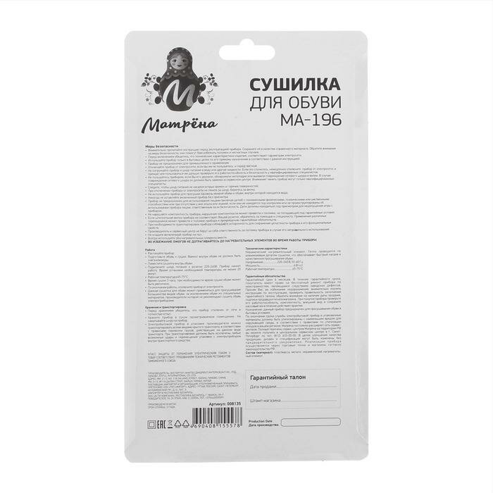 Сушилка для обуви Матрена МА-196, 10 Вт